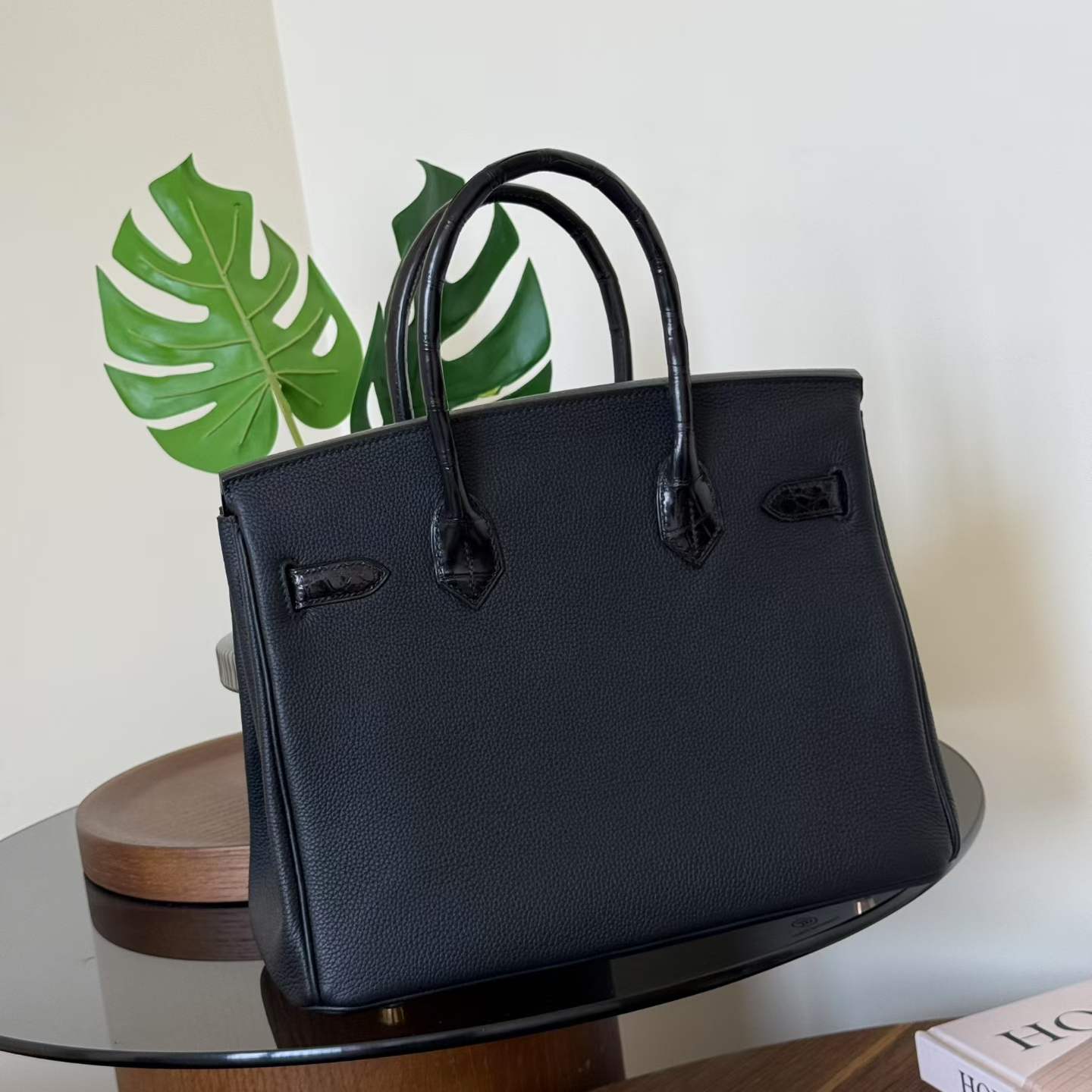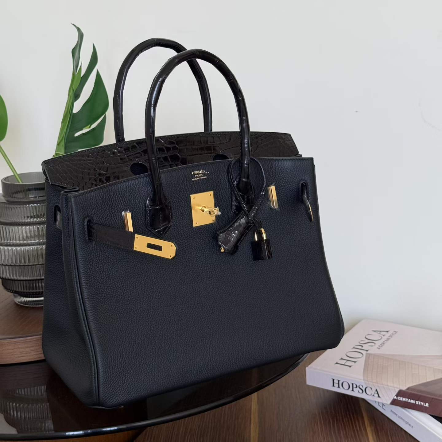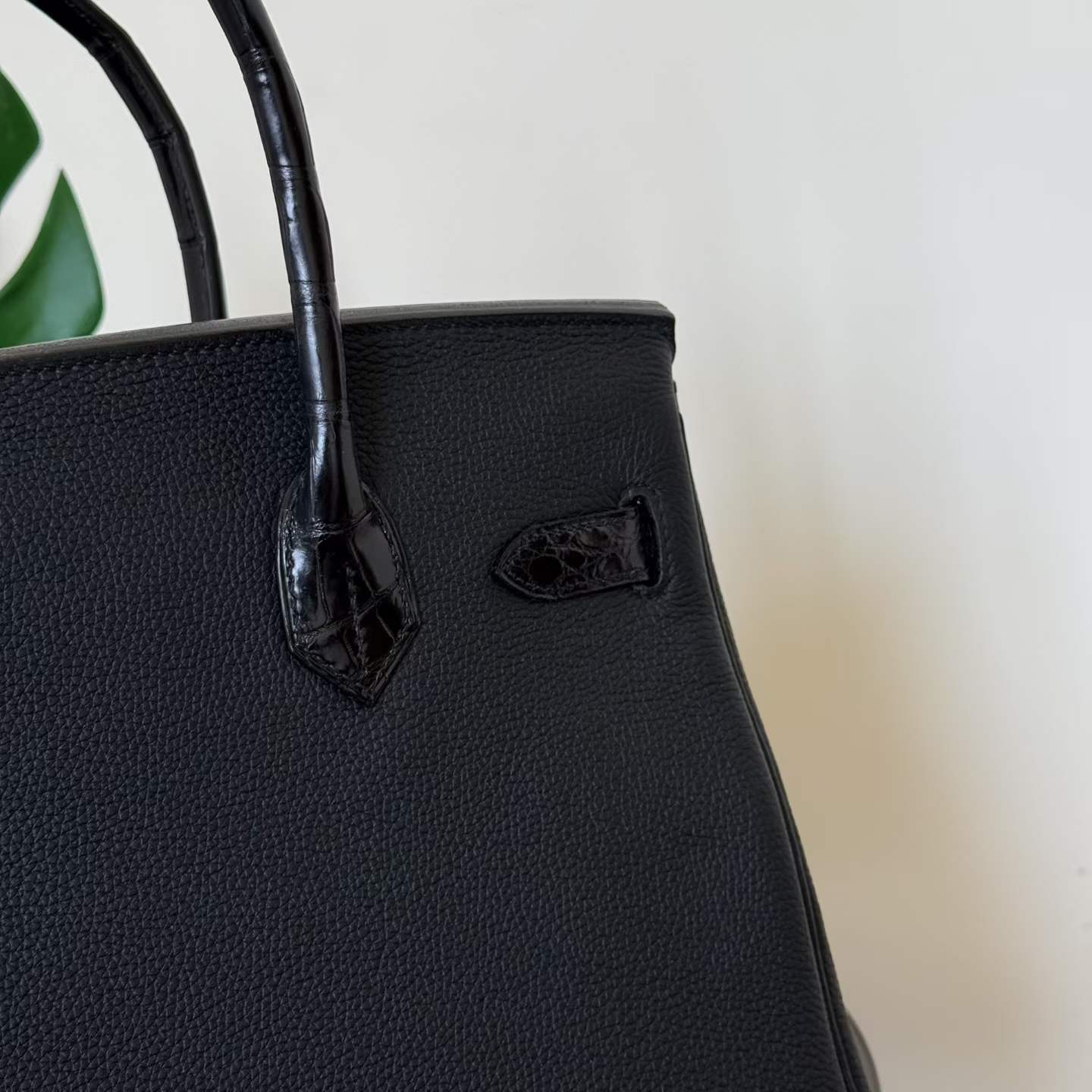 Hermès Birkin 25 Black Touch Shiny Crocodile Togo Palladium Hardware