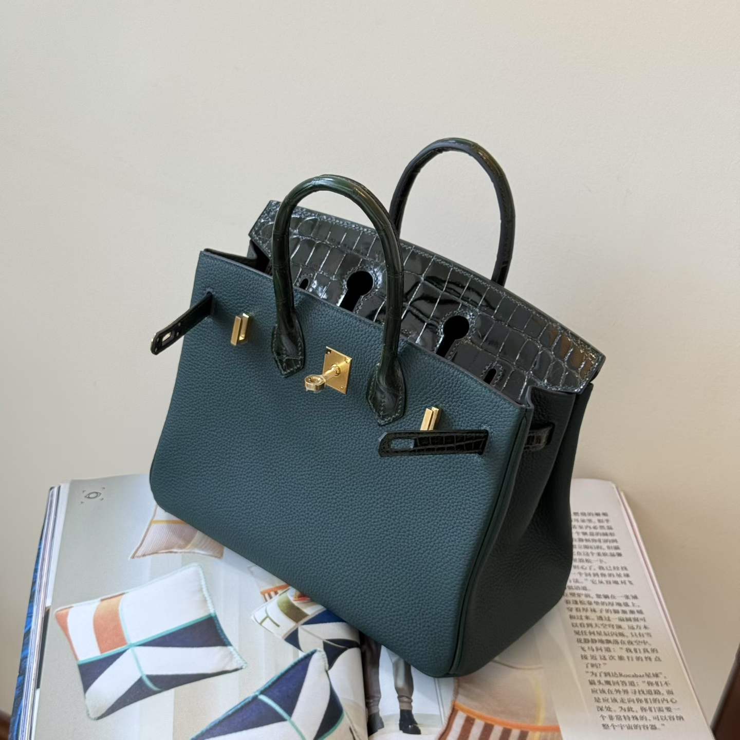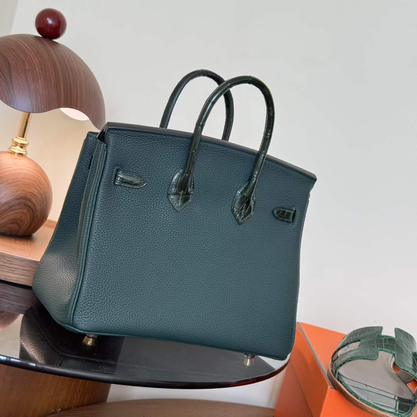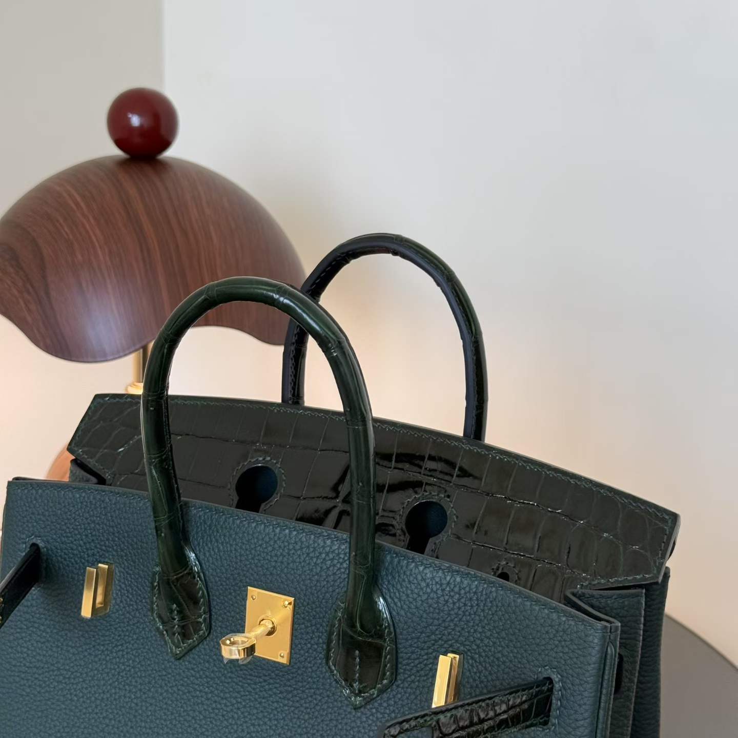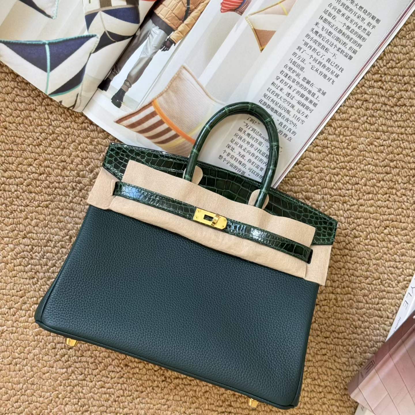 Hermès Birkin 25 Touch Vert Cypress Togo Crocodile Gold Hardware