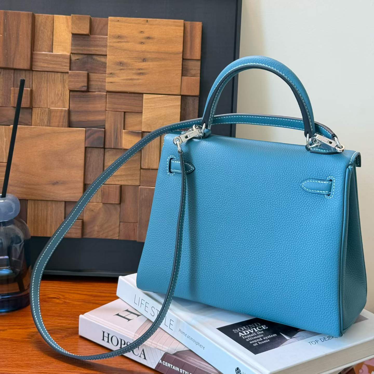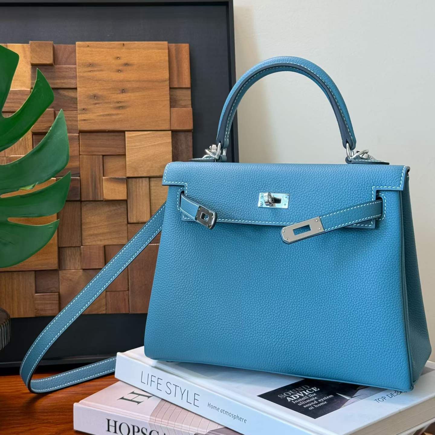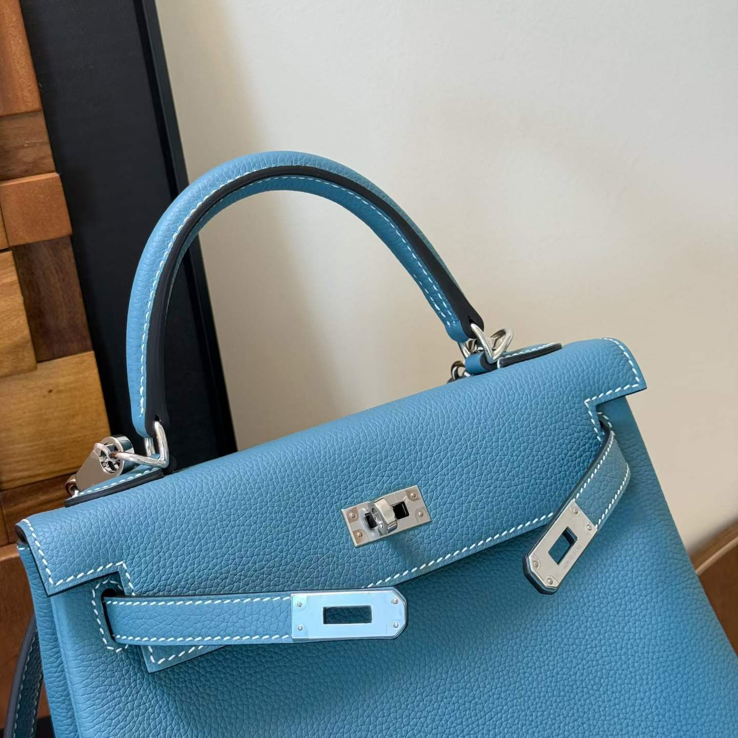 Hermès Kelly 25 Blue Jean Togo Palladium Hardware
