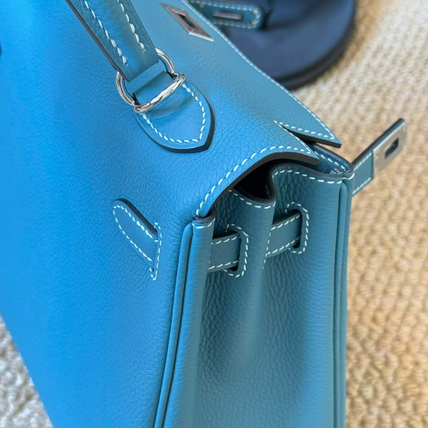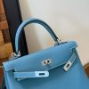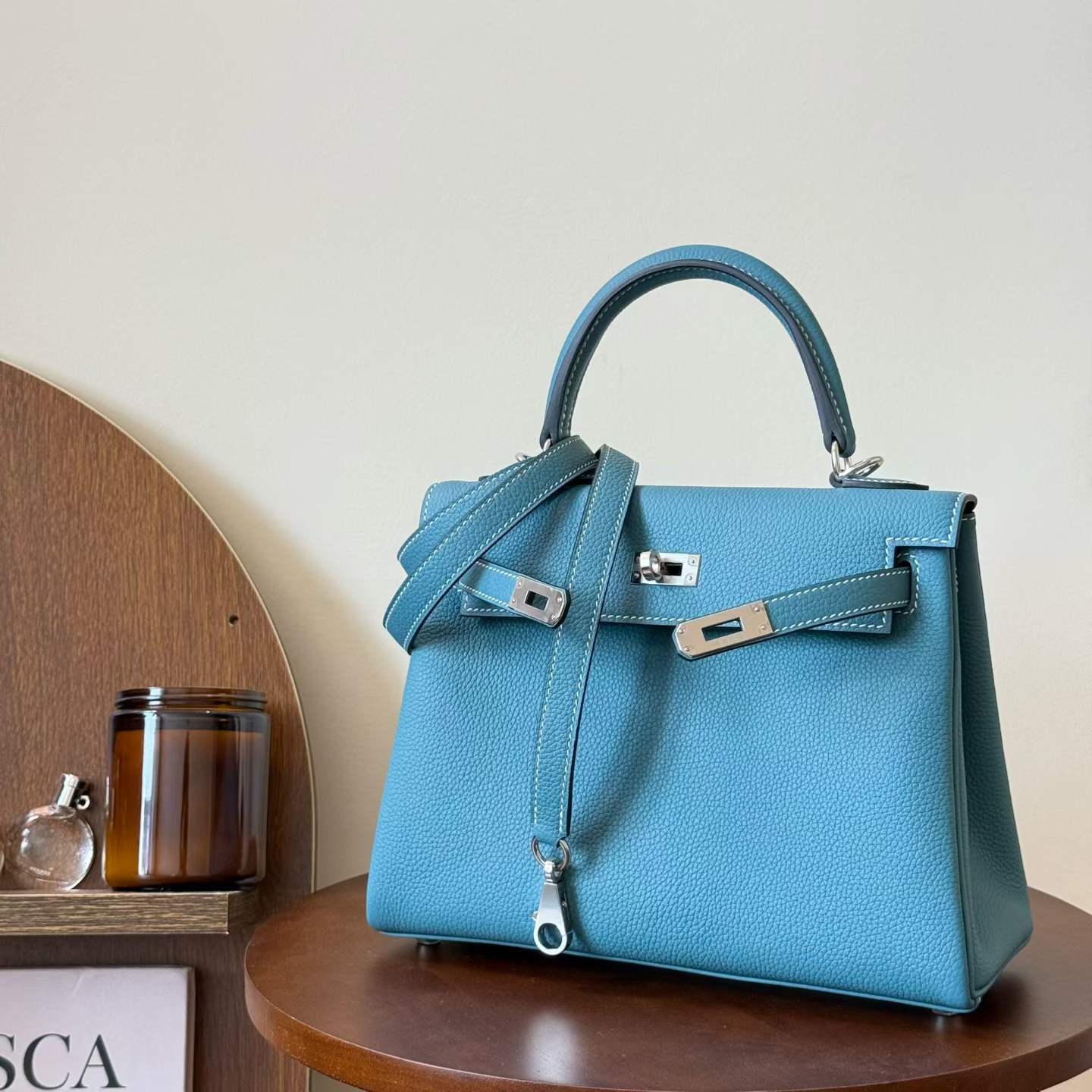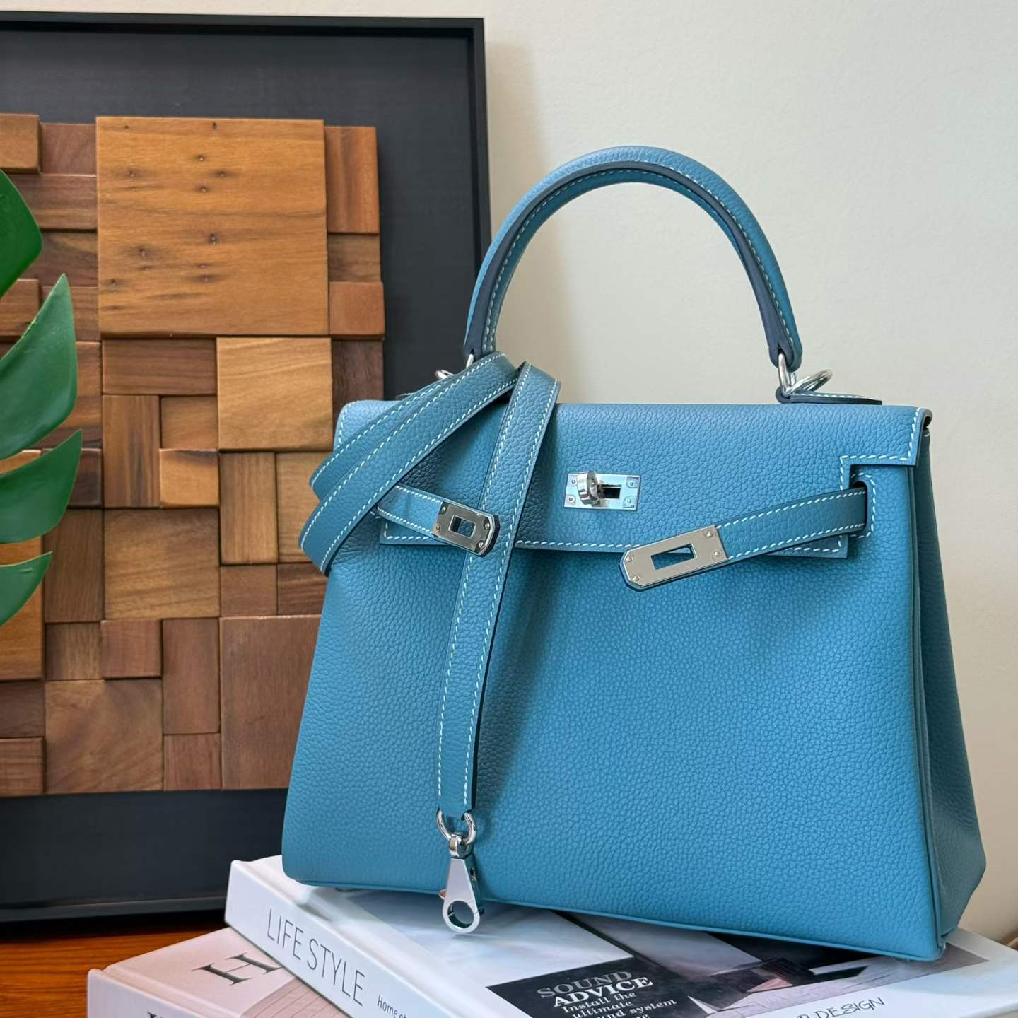 Hermès Kelly 25 Blue Jean Togo Palladium Hardware