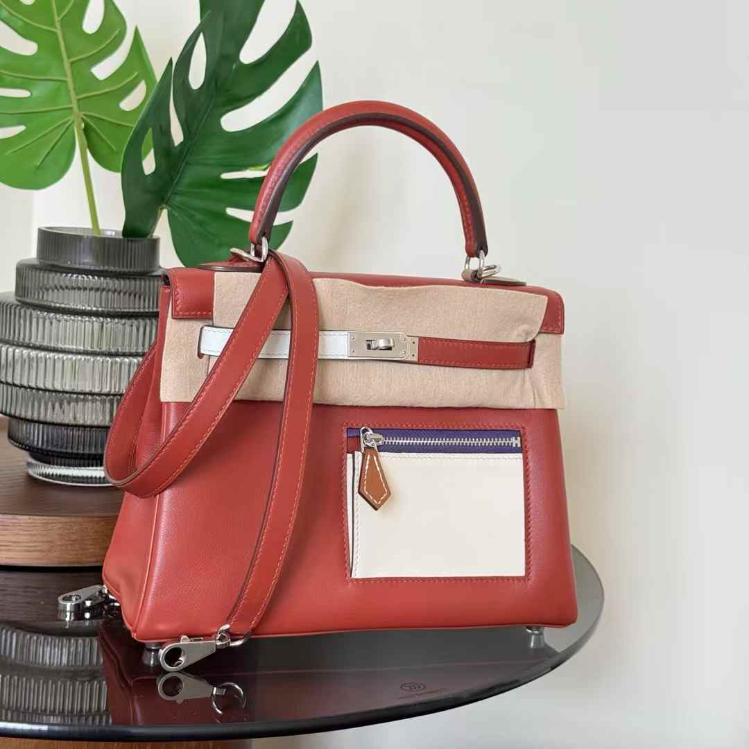 Hermès Kelly 25 Rouge Tomate Colormatic Swift Palladium Hardware
