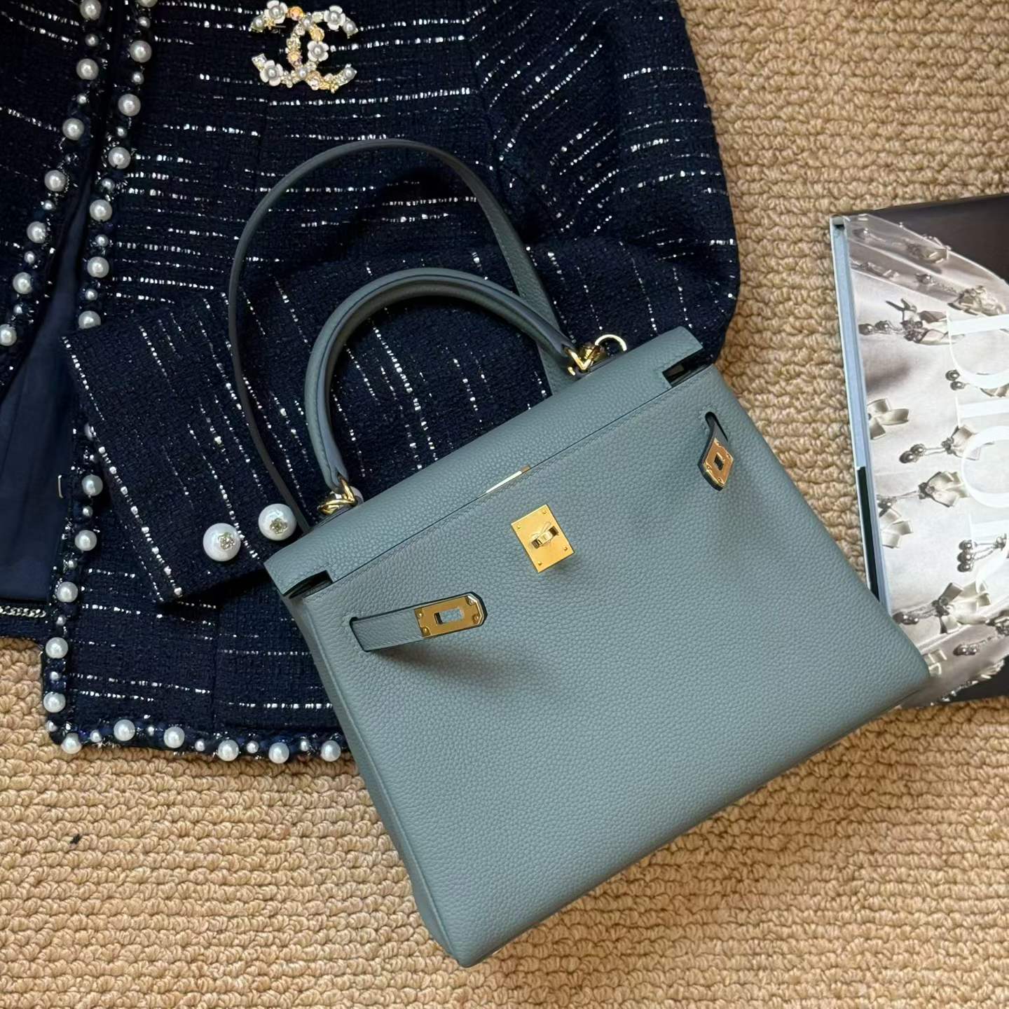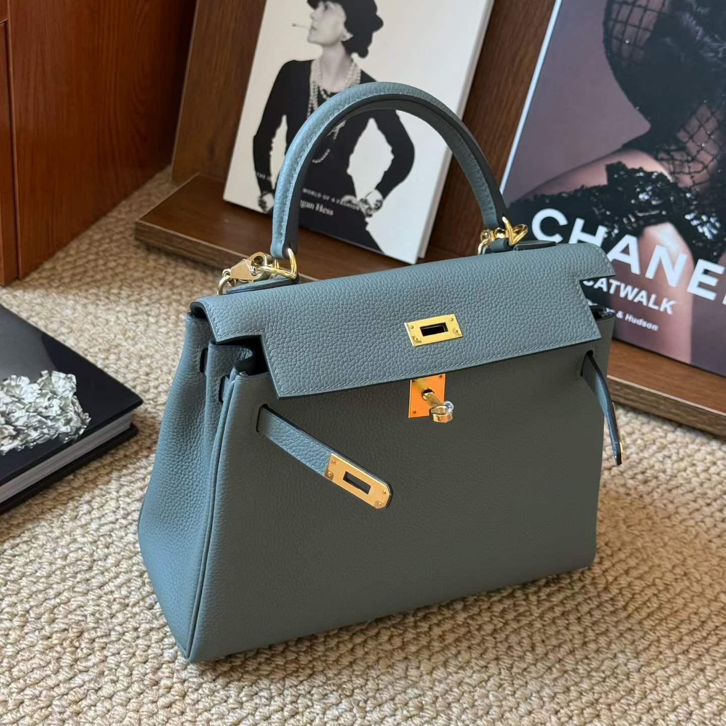 Hermès Kelly 25 Vert Amande Togo Gold Hardware