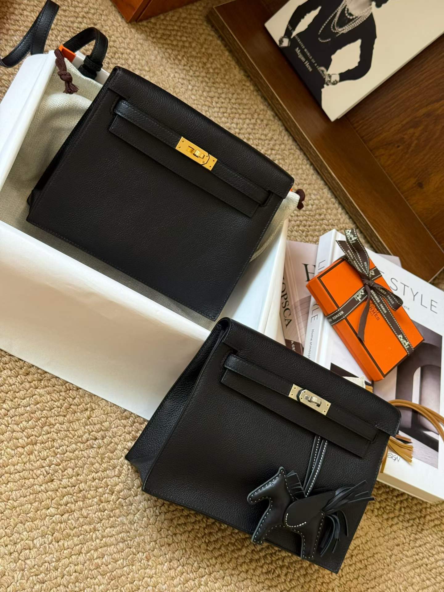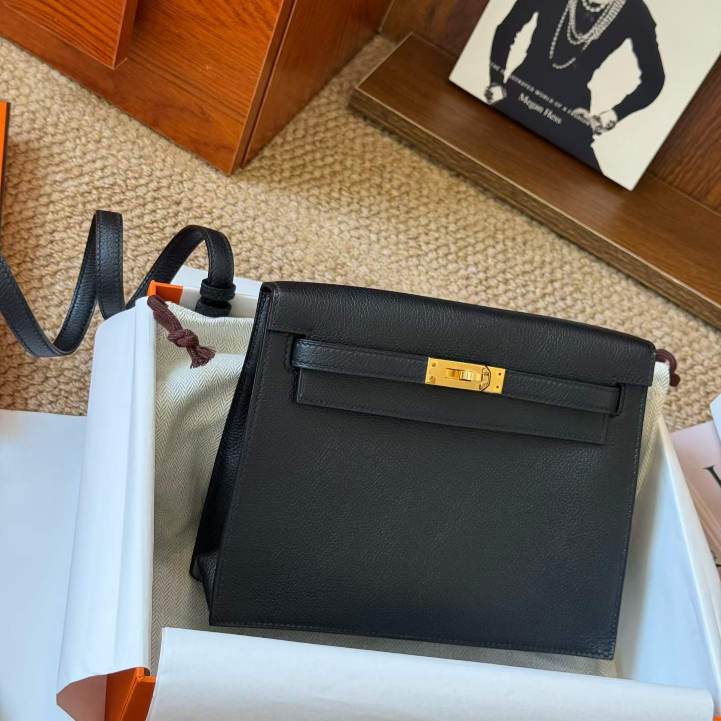 Hermès Kelly Danse Black Evercolor Palladium Hardware/Gold Hardware