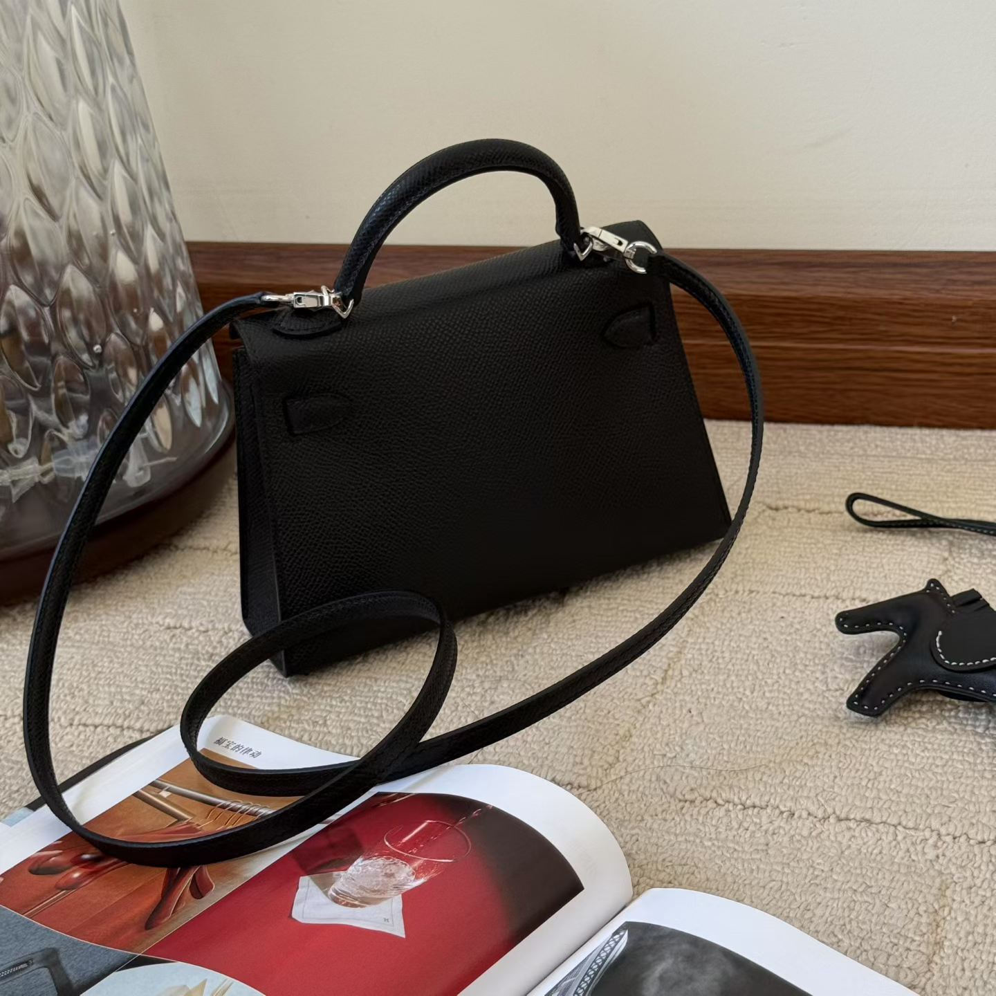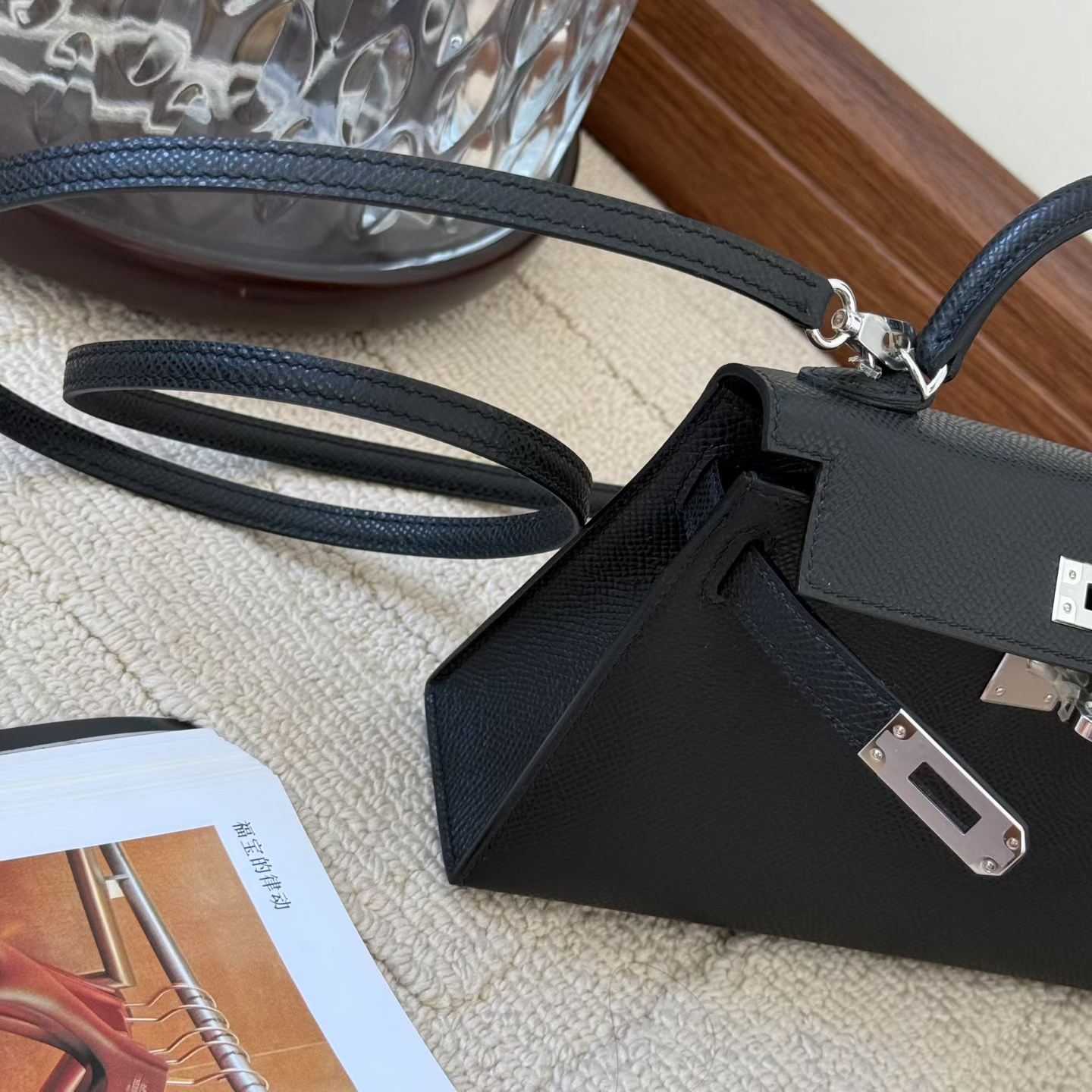 Hermès Kelly Mini II Black Epsom Palladium Hardware