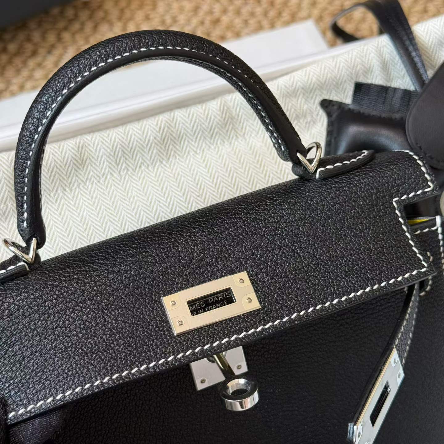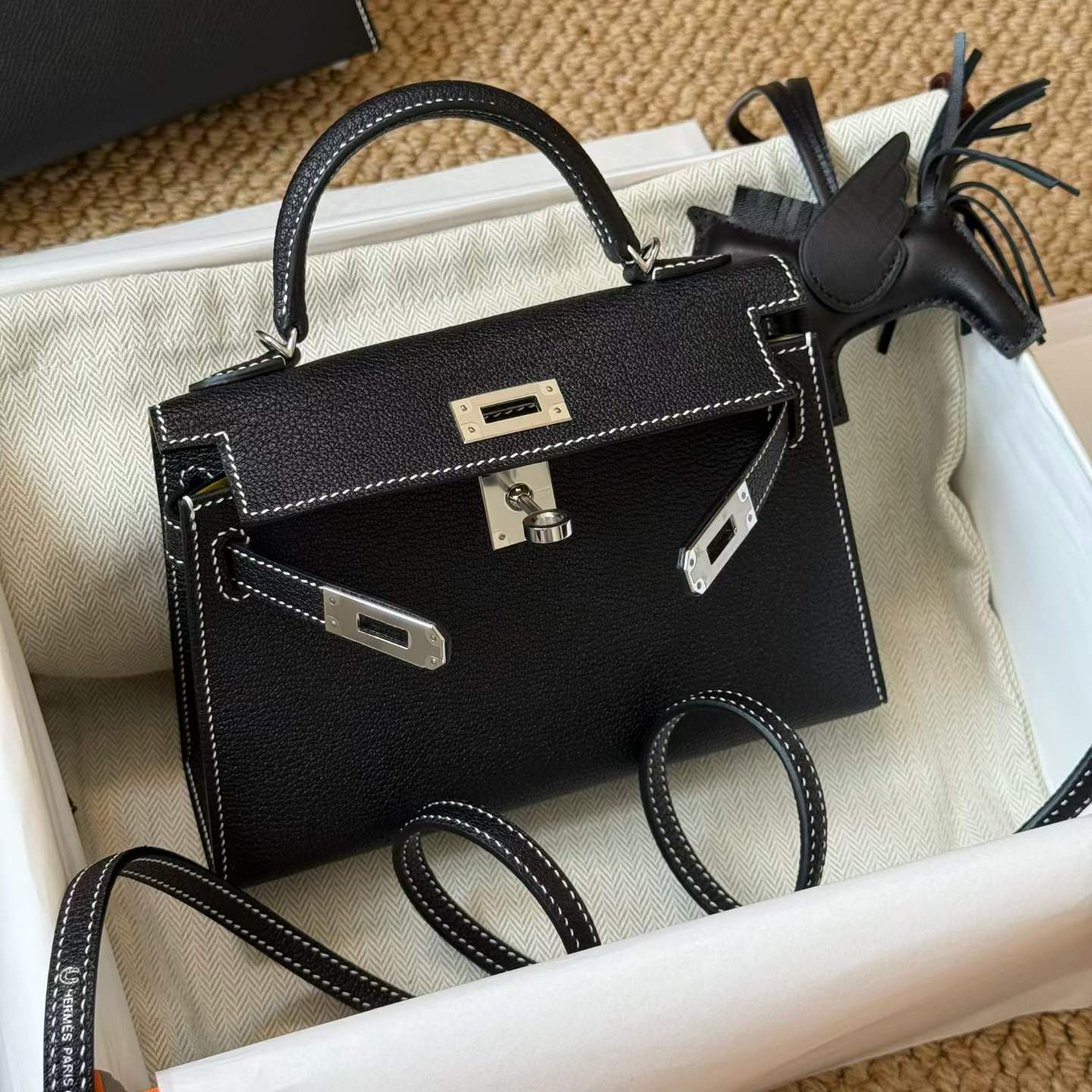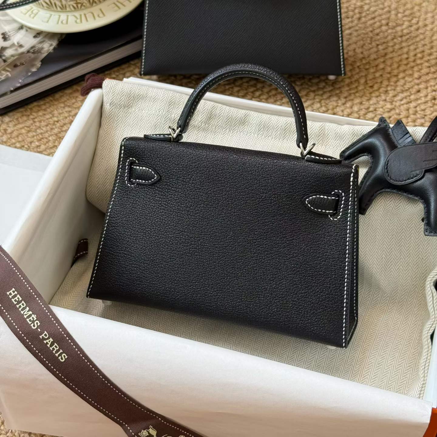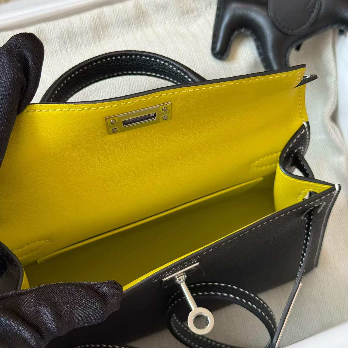 Hermès Kelly Mini II HSS Black-Amber White Stitches Cherve Palladium Hardware