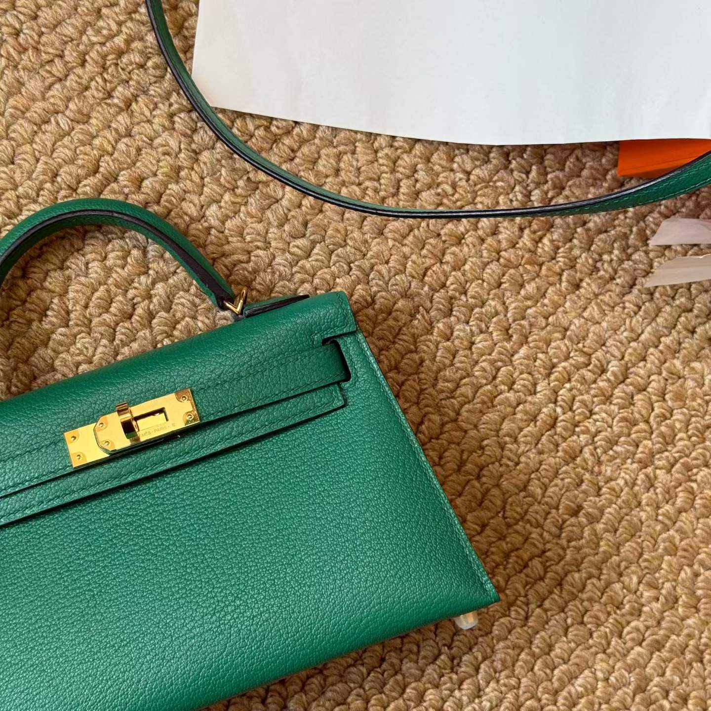 Hermès Kelly Mini II Menthe Cherve Gold Hardware