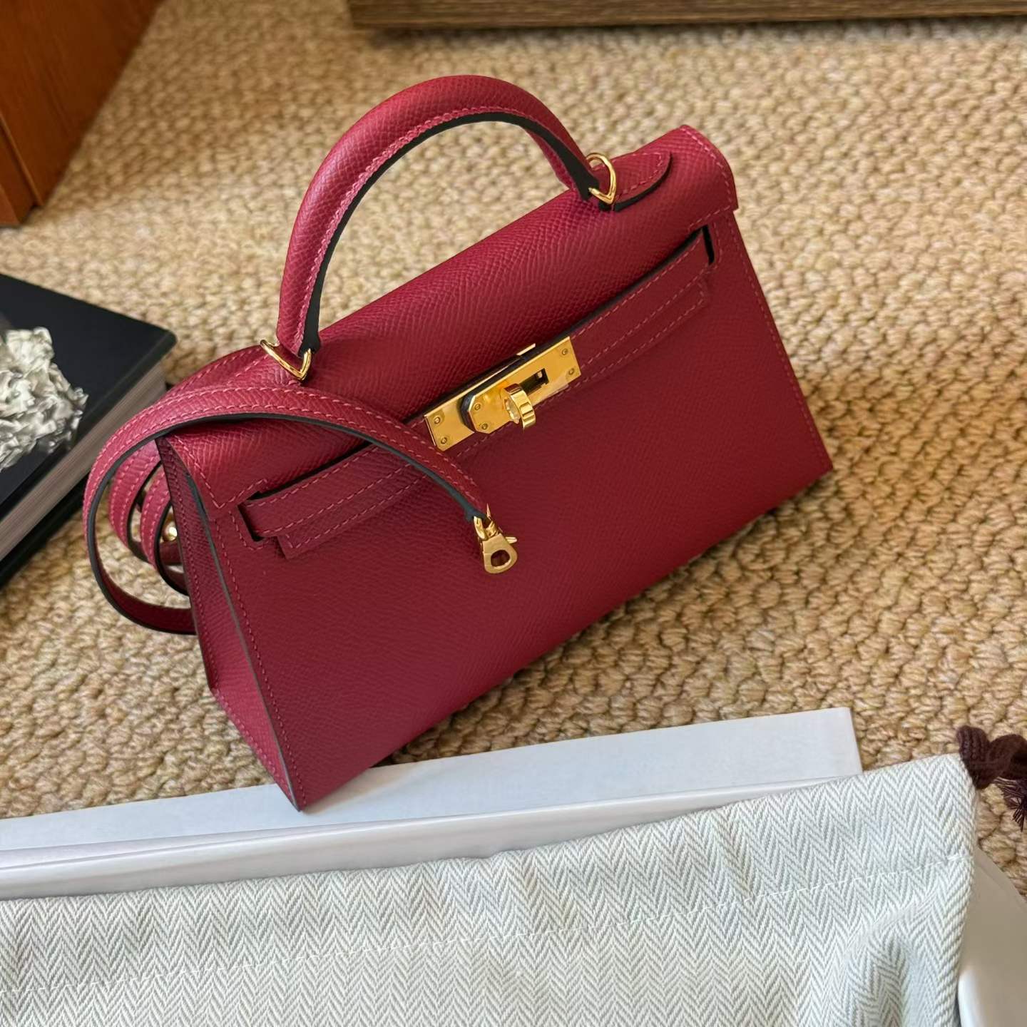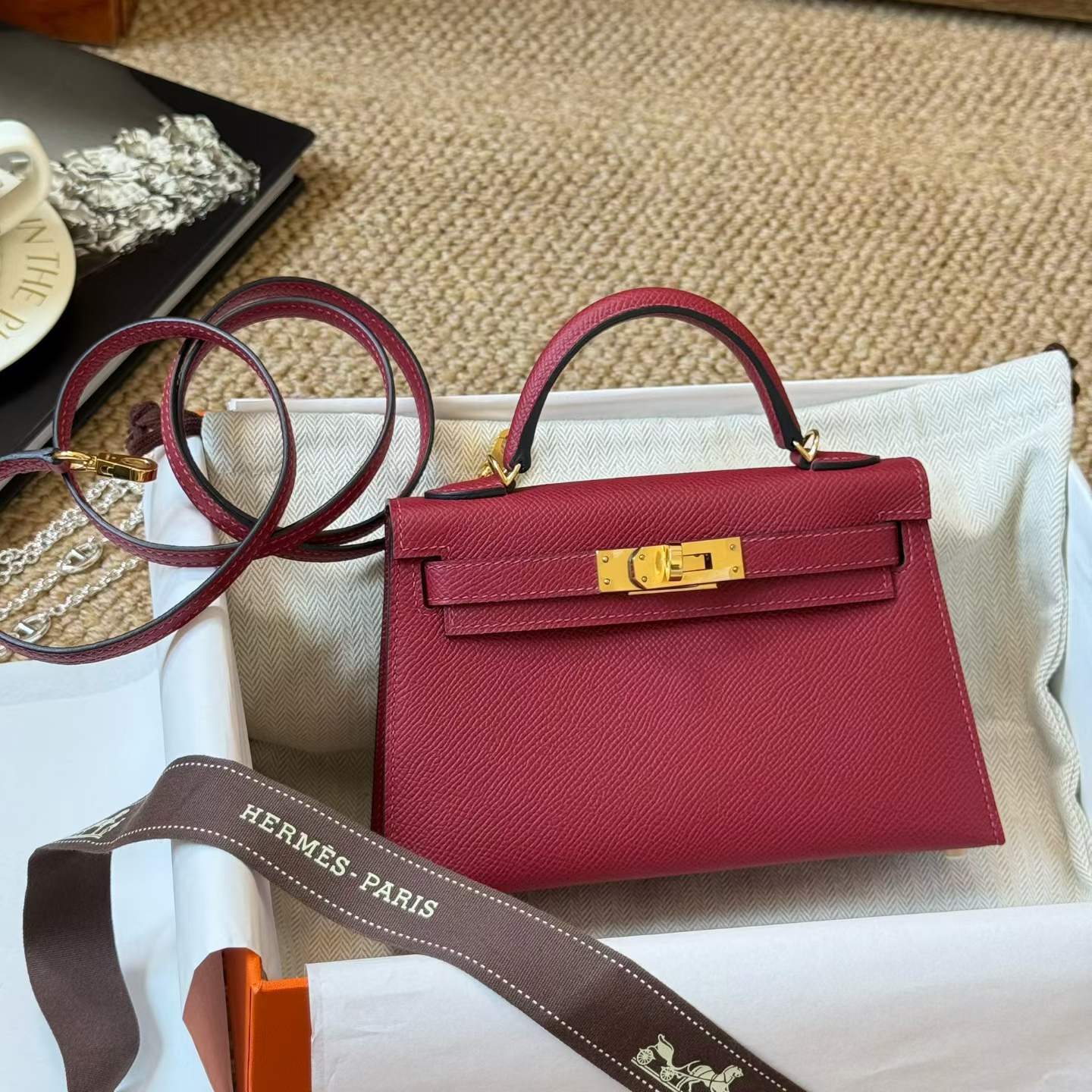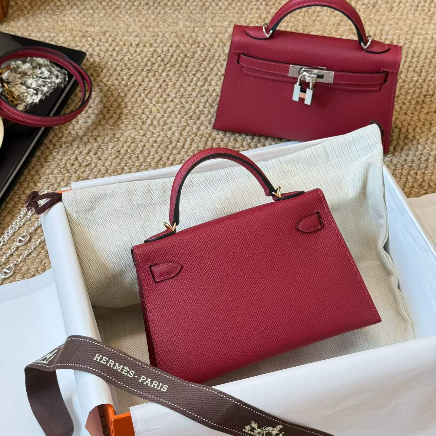 Hermès Kelly Mini II Rouge Gerenat Epsom Gold Hardware/Palladium Hardware