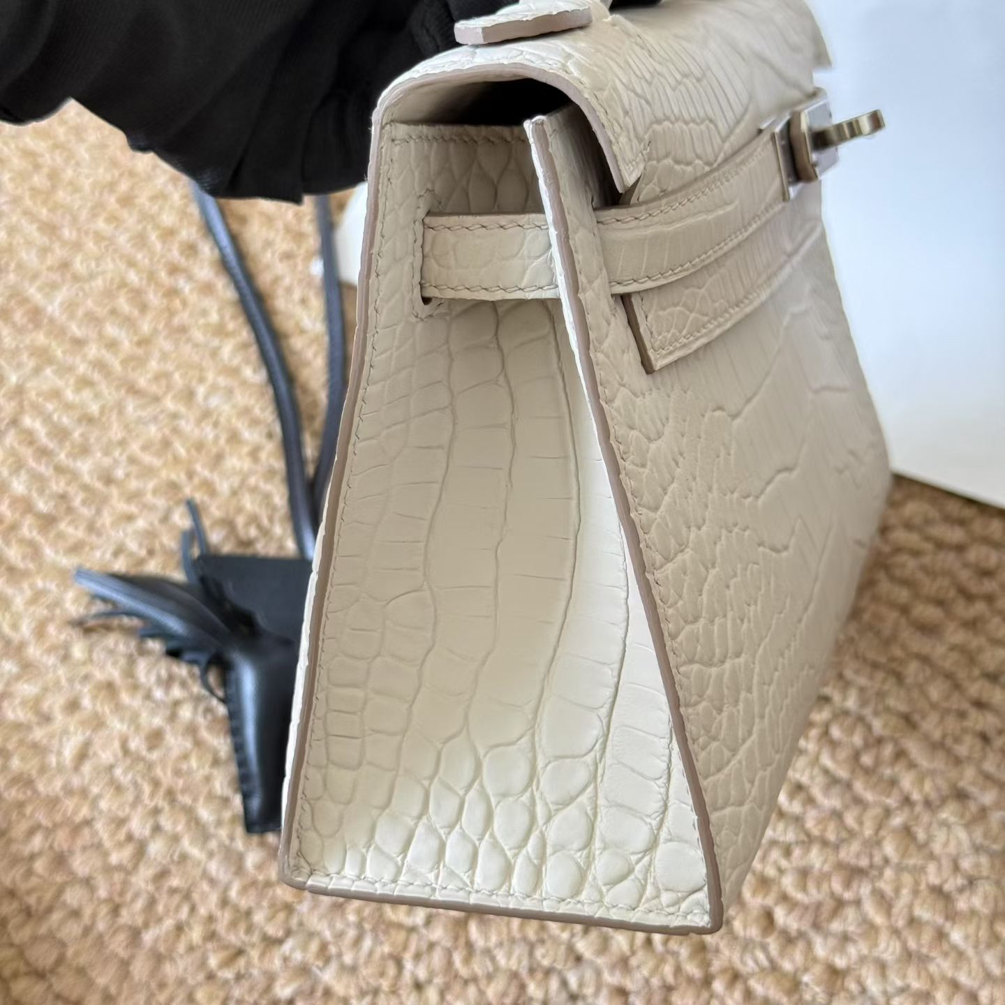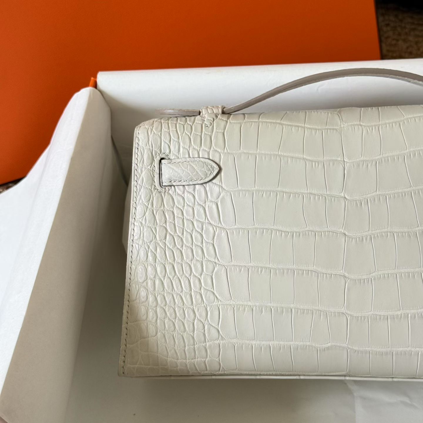 Hermès Kelly Pochette Beton Matte Alligator Crocodile