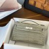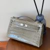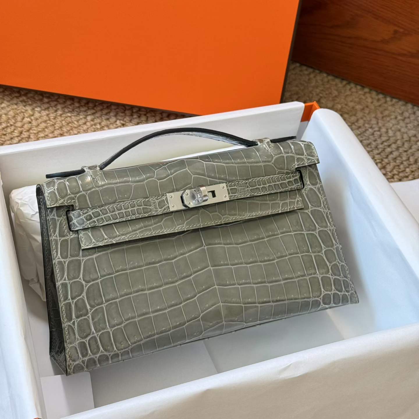 Hermès Kelly Pochette Graphite Shiny Crocodile Palladium Hardware