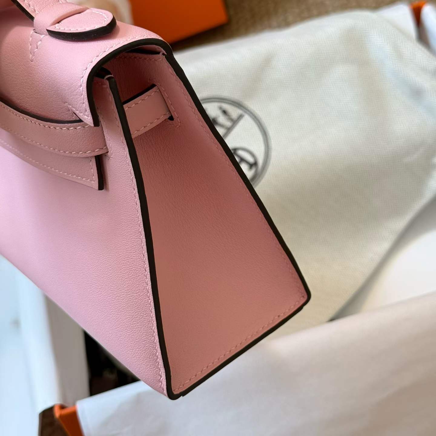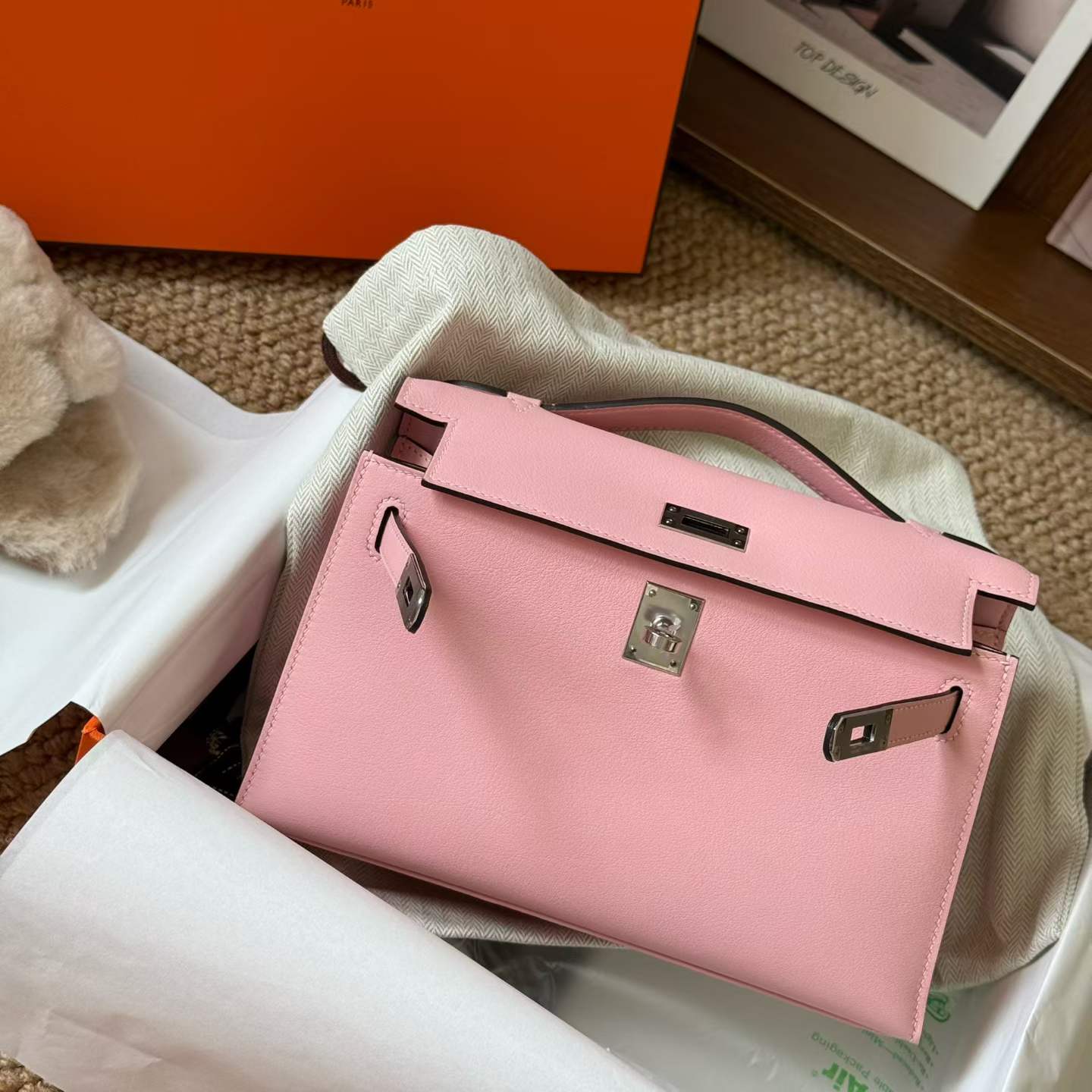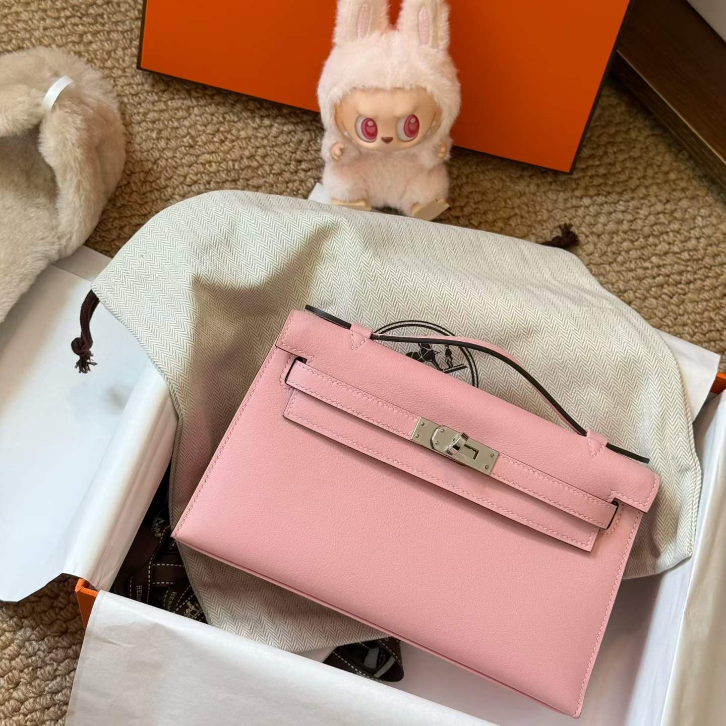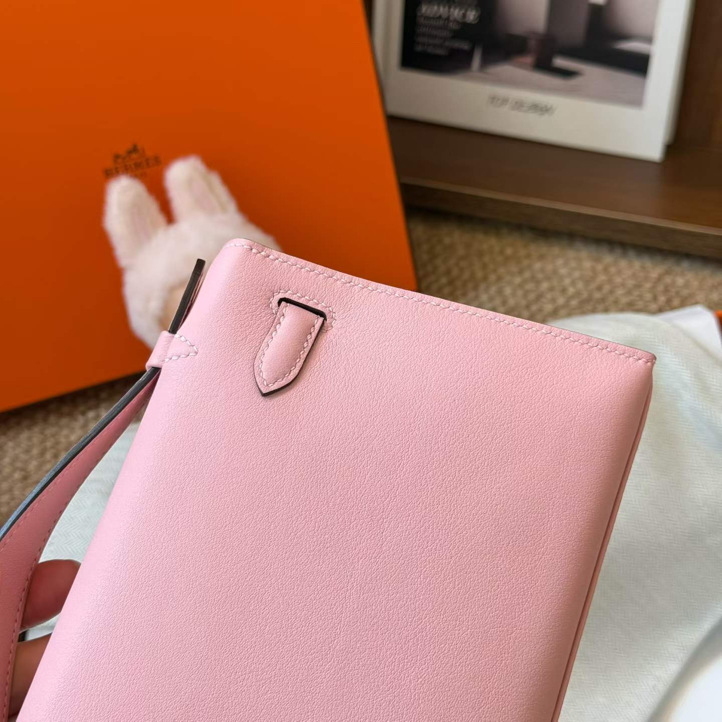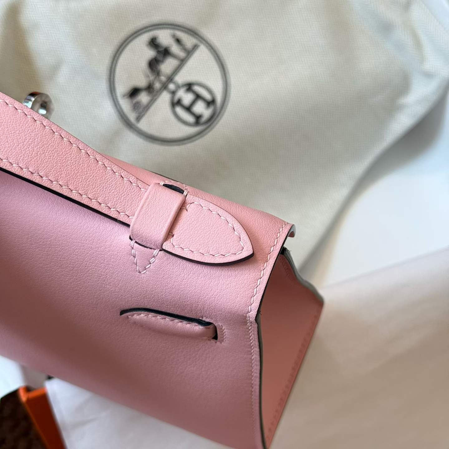 Hermès Kelly Pochette Rosa Sakura Swift Palladium Hardware