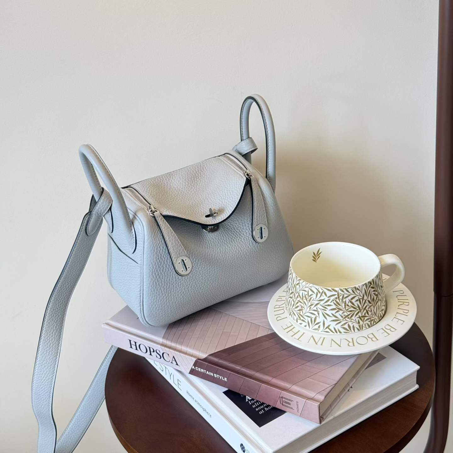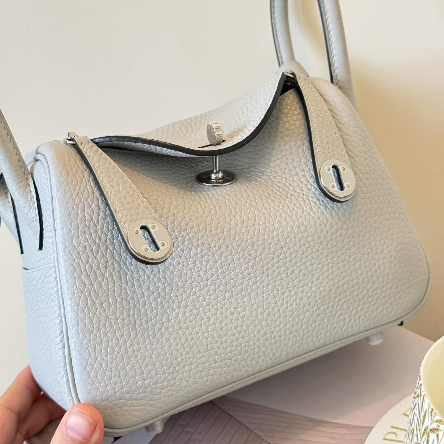 Hermès Mini Lindy Blue Pele Celemence Palladium Hardware