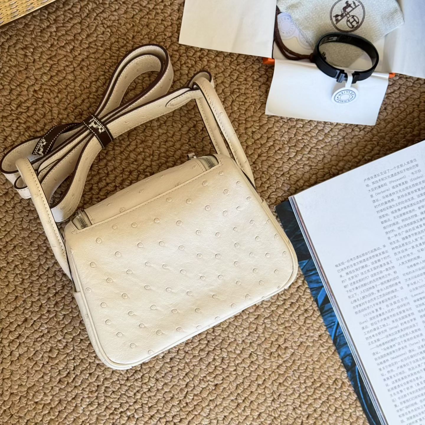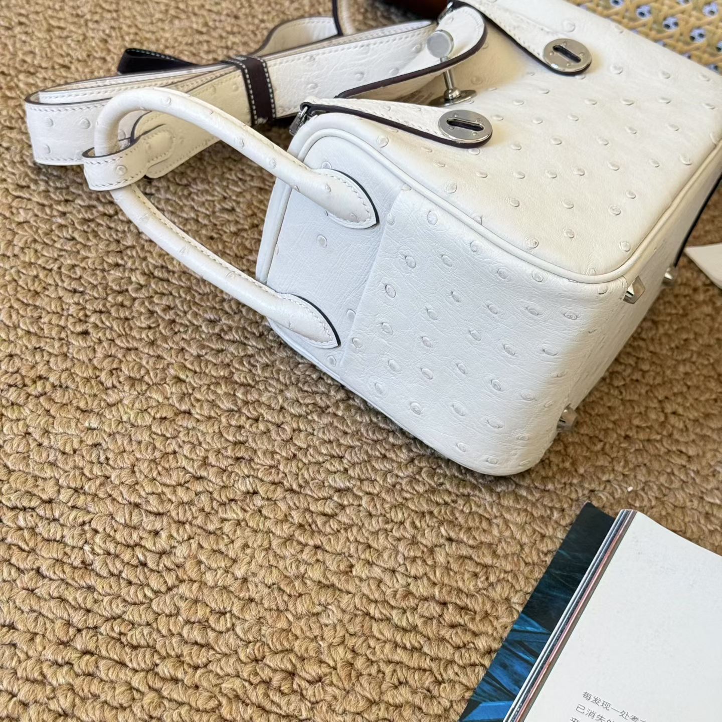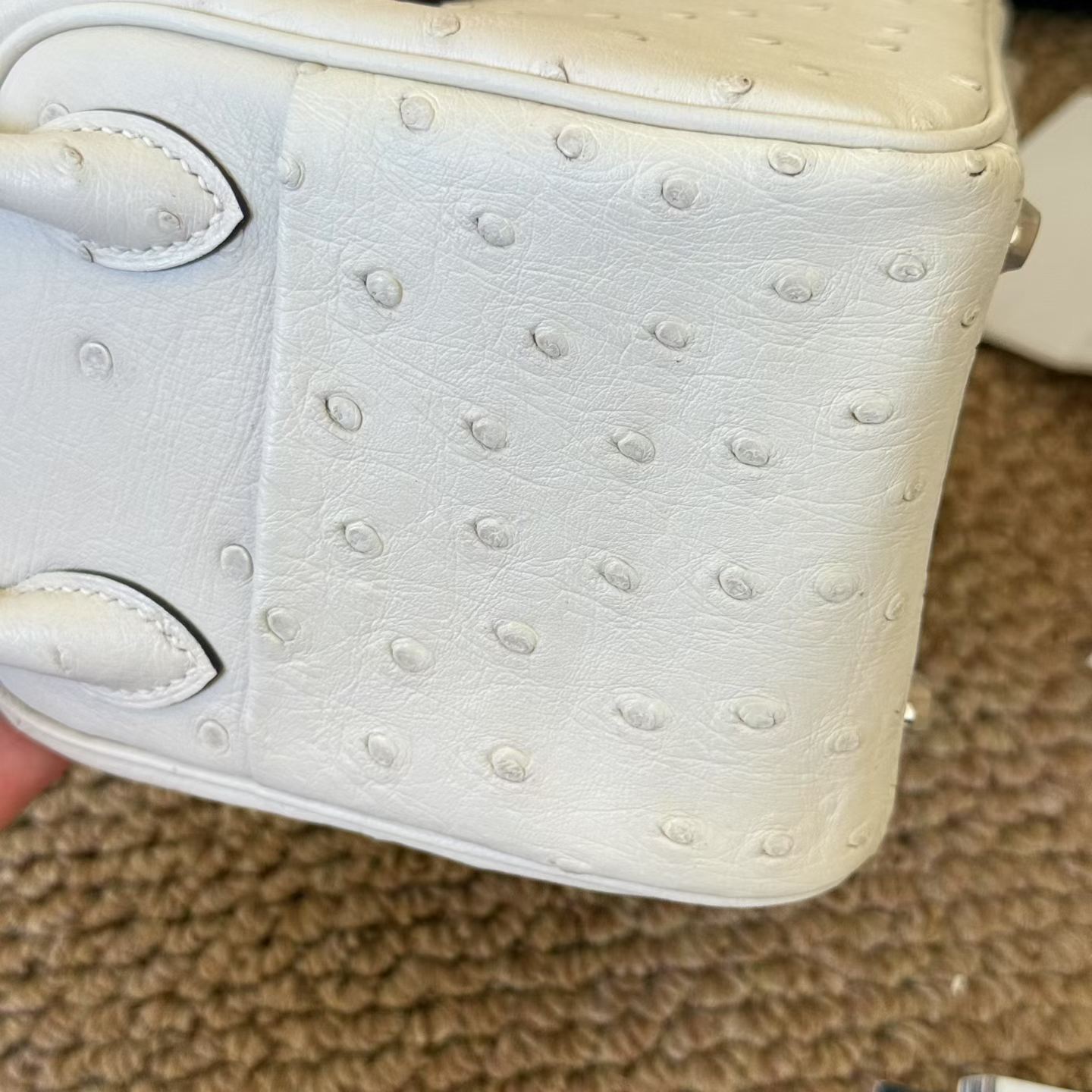 Hermès Mini Lindy Craie Ostrich Palladium Hardware