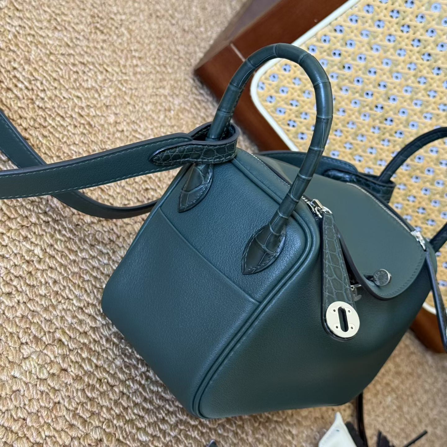 Hermès Mini Lindy Vert Cypress Touch Swift Palladium Hardware